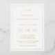 Simple Couples Wedding Shower Invitación con un diseño moderno y elegante con tu monograma de dos letras en la parte superior y tus detalles rodeados de un delgado borde. Todos los elementos de diseño están en Relieve metalizado oro real. Una moda y un diseño de diseño, ideal para una pareja minimalista.