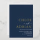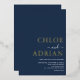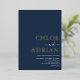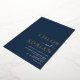 Simple invitación a una boda mínima de Relieve metalizado de oro azul marino para que invites a amigos y familiares a celebrar a tu boda. Todo el texto es fácil de personalizar con la plantilla proporcionada.