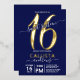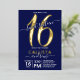 Invitación Con Relieve Metalizado Sencilla Marina Real de Oro Azul Dulce 16 Cumpleañ