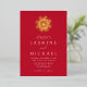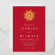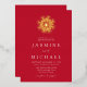 Haz que tu gran día brille con nuestra invitación a la boda de Relieve metalizado dorado y rojo. Este impresionante diseño muestra un audaz copo de nieve de Relieve metalizado dorado sobre un vibrante fondo rojo. Las parejas pueden personalizar con sus nombres y detalles bodas en elegantes letras en serif blancas con acentos caligráficos. Perfecto para bodas modernos de invierno, vacaciones y Navidades, esta invitación le da un toque lujoso a su celebración festiva.