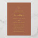 Invitación a la boda de Relieve metalizado oro de estilo tradicional con un diseño sencillo que incluye tu monograma junto con palabras de acento en un guión elegante sobre un fondo de color terracota / naranja quemado / óxido. Esta clásica invitación a la boda es genial para un boda formal.