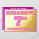 La parte delantera de esta audaz y divertida tarjeta de invitación de Relieve metalizado de sétimo cumpleaños incluye un nombre personalizado, un gran número "7º", el mensaje "¡PARTIDO DE CUMPLEAÑOS!", y un borde, todos con un patrón de líneas rosa oscuro y oscuro. En la parte posterior se incluyen detalles personalizados sobre el evento, como la fecha, la hora, el lugar y cualquier otra información que pueda ser útil. Las invitaciones personalizadas como estas pueden ser usadas para invitar a los invitados a una reunión de cumpleaños que se lleva a cabo para honrar el séptimo cumpleaños de alguien. [~Z0000597]