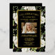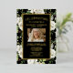 Honre a su ser querido con un gesto único y sincero. Nuestras invitaciones de papel de estaño 'Celebración de la vida' ofrecen una mezcla elegante de estilo y sentimiento. El fondo negro elegante, las flores blancas y la foto personal se combinan para evocar recuerdos de felicidad. Esta invitación no es solo para anunciar un servicio fúnebre. Es para celebrar una vida vivida plenamente. Fáciles de personalizar, estas invitaciones son una oda a la historia única de la vida que fue.
