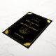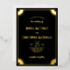 Invitación Con Relieve Metalizado Simple Black Gold Art Deco Boda Floral Retro