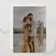 Una simple tarjeta de fotos de agradecimiento del boda, con su retrato boda favorito con "Gracias" en un moderno tipo de letra caligrafía en Relieve metalizado real. Rótulo con tus nombres.