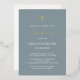Invitación Con Relieve Metalizado Simple Christening Minimal Gray Blue & Real Gold