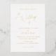 Clásica invitación a la boda blanca con "el boda de" y "recepción a seguir" en un elegante y delicado guión. Todo el texto está impreso en Relieve metalizado oro real. Un diseño sencillo sin gráficos hace de este un diseño atemporal y lujoso, perfecto para un boda formal.