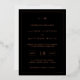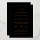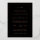 Invitación a la boda de Relieve metalizado de oro simple en negro y rosa con un diseño moderno y elegante con su monograma de dos letras en la parte superior, un diseño de fecha audaz y sus detalles rodeados de un borde delgado. Todos los elementos de diseño se imprimen con un Relieve metalizado oro rosa real sobre un fondo negro. Una moda y elegante Invitación a la Boda que es ideal para una pareja minimalista.