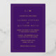 Simple Wedding Invitation con un diseño moderno y elegante con tu monograma de dos letras en la parte superior y tus detalles rodeados de un delgado borde. Este diseño está impreso con Relieve metalizado de oro real sobre un fondo púrpura real. Una moda y un diseño de diseño, ideal para una pareja minimalista.