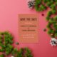 Invitación Con Relieve Metalizado Simple Naranja Quemado Moderno Ahorra La Fecha Oro