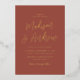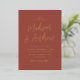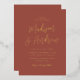 Elegantes invitaciones nupciales con sus nombres mostrados en un guión de Relieve metalizado dorado escrito a mano con un fondo rojizo. Personalice las invitaciones simples a la boda de Relieve metalizado de oro con los detalles de su boda. Diseñado para coordinar con nuestra colección de bodas de script simple.