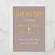 Invitación Con Relieve Metalizado Simple Taupe Neutral Moderno Ahorra La Fecha Oro