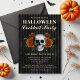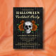 Invitación Con Relieve Metalizado Skull Orange Roses Halloween Cocktail Party Gold