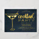Invitación Con Relieve Metalizado Snazzy Blue Martini Glass Cocktail Fiesta