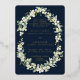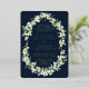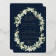 Recibida en una oscura recepción naval, sólo invitación a la boda, con nevas pintadas a mano y tallos de eucalipto dispuestos en un bello marco botánico. El texto y los puntos dispersos en la parte delantera de la tarjeta son pulsados por Relieve metalizado. Todo el texto es completamente editable. Vea esta colección en mi tienda para invitaciones con opciones de texto alternativas, colores diferentes y para elementos de coordinación.