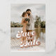 Una boda ahorra la fecha con una foto personalizado y una tipografía de estilo retro con Relieve metalizado de oro rosa impresa es una manera única y elegante de anunciar sus próximos nupcias a sus amigos y familia. La foto del personalizado es un toque especial que añade un elemento personal y sentimental al diseño, mientras que la impresión de Relieve metalizado de oro subió añade un toque de glamour y sofisticación. Este diseño impresionará y hará que todos se entusiasmen por tu gran día.