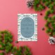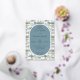 This elegant wedding invitation features a central oval frame with a textured background of abstract geometric patterns in soft blues, creamy beiges, and crisp whites. The design combines modern minimalism with vintage charm through clean lines and smooth gradients, creating a sophisticated yet inviting atmosphere. Classic serif typography is used throughout, emphasizing the main names while maintaining readability for all details. Surrounding the oval are repeating triangular shapes that add dynamic movement and balance to the layout, making it perfect for celebrating a significant event like a wedding.