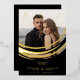 Announce your event in a sophisticated manner with this photo Save the Date card, featuring a modern touch and real golden details in a metallic finish. The captivating golden details, created with genuine metallic foil, shine against a black background, creating a stunning contrast.