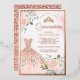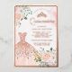 Invitación Con Relieve Metalizado Sparkling Gown Rubor Floral Quinceanera Rosa Gold