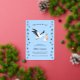 A stork is carrying a baby in a bundle. The baby is taking a selfie using a cellphone. Lovely and original baby shower invitation.