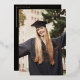 Stylish 2 in 1 graduation party invitation and graduation announcement featuring a large photo of the graduate with decorative overlays in the corners in a minimalist style to frame the graduate, printed with real rose foil. Graduate is written across the photo in a modern signature script with the graduate's name and school and the year beneath, also in rose gold foil. Add the invitation wording to the back inside the same minimalist corner frames with a stylish and minimalist typography design. Change to silver foil or gold foil if desired!
