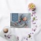 El simple anuncio de nacimiento moderno presenta una única foto horizontal o orientada al paisaje con un cartel de Relieve metalizado dorado recortado en la parte superior izquierda, que lleva el nombre del bebé, fecha de nacimiento y estadísticas de nacimiento. Añade un mensaje personal a la parte posterior, junto con tres fotos cuadradas adicionales.