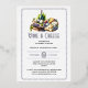 Presentamos nuestra exquisita invitación de 5 x 7 pulgadas, diseñada para elevar su ocasión especial con un toque de sofisticación atemporal, donde la elegancia se encuentra con la simplicidad. Imaginen a sus invitados y/o clientes recibiendo un vistazo de la refinada belleza que les espera, cada invitación, una obra maestra de lujo subestimado. En un marco blanco inmaculado, nuestro ilustracion acuarela captura una deliciosa fiesta de embutidos de quesos y uvas finos en tablas rústicas de madera. Botellas de vino maduro completan el delicioso ambiente de fiesta para un evento inolvidable. Con plantillas de Relieve metalizado de personalizable negro y plata en la parte delantera, colocadas con gracia debajo de la obra de arte, puedes añadir sin esfuerzo tu toque personal a esta escena idílica, haciéndola única tuya. Perfecto para la jubilación, graduación o funciones de negocios, esta invitación a "vino y queso" promete encantar a sus invitados y marca el tono para una celebración llena de sofisticación y glamour casual. Eleva tu evento con un toque de elegancia clásica. La impresión real de Relieve metalizado puede cambiarse de plata a oro simple o rosa si se prefiere.