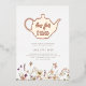 Una tetera con una tipografía de "té para dos" en el interior con Relieve metalizado de oro rosa real. En el fondo hay unas delicadas acuarelas pintadas con flores silvestres. ¡Perfecto para tu fiesta de té de cumpleaños!