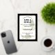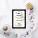 Celebre su amor con esta lujosa invitación a celebrar bodas con arcos, con un elegante fondo negro, un suave follaje de oliva y un moderno marco geométrico de oro. La cita poética y la sofisticada tipografía hacen de este diseño el lugar perfecto para bodas nocturnos formales o eventos de jardín de corbata negra. Personalizable completo con sus nombres, fecha, hora y ubicación. Una elección impresionante para las parejas que buscan estilo y sentido.