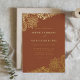 Invite a su boda a su familia y amigos con esta invitación de oro prensada de Relieve metalizado. Cuenta con un lugar antiguo floral y follaje sobre un fondo de terracota. Esta invitación a la boda de encaje floral es perfecta para bodas con temática vintage. Personalice esta invitación a la boda de Relieve metalizado de oro agregando nombres, fecha, hora, lugar y otros detalles del evento.