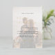 ¡Añade algo de brillo a tus invitaciones de boda con Relieve metalizado oro, plata o oro rosa de verdad! La parte delantera de la tarjeta muestra una foto personalizado de la pareja, con un overlay blanco semi-transparente para el texto de invitación a la boda en la tipografía serif clásica con un toque de caligrafía de escritura elegante y detallado con Relieve metalizado real. La parte trasera de la tarjeta muestra una segunda foto de la pareja feliz, junto con un conveniente código QR y una sección dedicada para los detalles del boda. Nuestro sencillo diseño en blanco y negro es atemporal y versátil, adecuado para cualquier tema y temporada. Puede elegir fácilmente entre oro, plata y Relieve metalizado de oro rosa de la herramienta de arriba. Vea la colección enlazada en esta página para coordinar artículos o visite nuestra tienda para más invitaciones de boda.