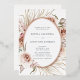 Todo en una Boho Rubor Floral Rosa Real Rosa de Relieve metalizado dorado Marco Oval Palm Seco Invitación a la boda... Nuestra invitación a la boda floral "All in One" incluye un arreglo de hermosas rosas rosas, eucaliptos y hojas de palma secas alrededor de un marco oval de Relieve metalizado metálico de oro real que crea un elegante borde para el texto de la invitación. La parte posterior de la invitación contiene todos los detalles que normalmente se verían en tarjetas separadas dentro del paquete de bodas. Esta moderna invitación a las bodas de doble cara fue diseñada para ser elegante y consciente del presupuesto... sin mencionar el ahorro de tiempo para futuras novias. En la parte posterior también hay una plantilla de gráfico de código QR que puede reemplazar con su propio código (o eliminar si no tiene previsto usar uno). Todo el texto de ejemplo se puede revisar fácilmente con su propia información sobre la plantilla de personalización.
