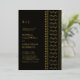Todo en una moderna Boho African Mudcloth Pattern Monograma Luxe Invitación a la Boda de Relieve metalizado dorado... Inspirada por diseños africanos de tejidos de lodo, nuestra singular invitación a la boda "Todo en uno" presenta un patrón tribal dramático en Relieve metalizado de oro real sobre un fondo negro anónimo junto a tu texto de invitación de oro y las iniciales de un monograma de novia y novio. La parte trasera negra de la invitación contiene todos los detalles que normalmente verías en tarjetas separadas en el paquete del boda con tinta de impresora dorada, incluyendo la hora y lugar de recepción, opciones de alojamiento, sitio web del boda, RSVP e información del registro de regalos. Todo el texto de ejemplo se puede revisar fácilmente con su propia información sobre la plantilla de personalización.