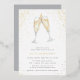 Las invitaciones al brunch festivo y elegante a la ducha de novia incluyen un par de copas de champán en color agua, llenas de burbujas. Personaliza con tus detalles de brunch de novia con letras grises de moda. El diseño se completa con el lujoso guarnecido y las letras de Relieve metalizado dorado.