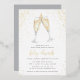 Las invitaciones al brunch festivo y elegante a la ducha de novia incluyen un par de copas de champán en color agua, llenas de burbujas brillantes. Personaliza con tus detalles de brunch de novia con letras grises de moda. El guarnecido y las letras del Relieve metalizado dorado completan el diseño.