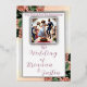 Hermosa invitación a la boda de diseño floral. La imagen es una hermosa novia y un hermoso novio saltando el bastón. Una tradición boda afroamericana de dejar pasar el pasado y saltar juntos a un gran futuro.