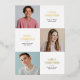 Haz que la graduación sea extra especial para 3 graduados con estas invitaciones de graduación conjuntas de papel de aluminio ¡Celebre a sus tres graduados con una plantilla de celebración triple atemporal y moderna que es simple de personalizar! Cree las invitaciones de graduación perfectas con un fondo blanco que se puede cambiar fácilmente a cualquier color que desee. Muestre las fotos de sus graduados y muestre con orgullo sus logros. Perfecto para una triple celebración, nuestros diseños únicos y plantillas fáciles de personalizar seguramente harán que esta ocasión especial sea un recuerdo duradero durante años. Puede ajustar la redacción en la parte posterior de la invitación para convertirla en un anuncio de graduación.