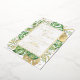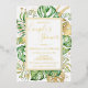 Esta moderna pareja tropical ofrece una ducha de bodas con palma verde y dorada, philodendros y hojas de helecho. Un elegante marco de Relieve metalizado dorado resalta el texto del Relieve metalizado dorado. Las salpicaduras de Relieve metalizado dorado acentúan este diseño botánico exótico y le aportan un poco de sofisticado capricho a la invitación. Este oasis de la isla es perfecto para cualquier ducha exterior, de playa o tropical temática.
