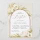 El bautismo de moda tropical o el bautizo de invitaciones en una atractiva paleta de color neutro cuentan con un arco de Relieve metalizado oro rosa que lleva su ceremonia de la iglesia y celebración o detalles fiestas, acentuados con frondas de palmera de color verde claro, follaje de la isla de la playa, orquídeas blancas, botánicos secos y pasto de pampas.