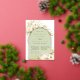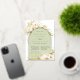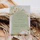 Las invitaciones a los ensayos de moda tropical en una atractiva paleta de color neutro cuentan con un arco de Relieve metalizado de oro rosa que lleva los detalles del ensayo de la ceremonia y de la cena, acentuado con frondas de palma de color verde claro, follaje de isla de playa, orquídeas blancas, botánicos secos en boho y pasto de pampas.