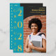 Invite family, friends, and mentors to celebrate with this striking photo graduation party invitation in bold turquoise, soft cream, and chic charcoal. The design showcases your graduate's photo in an elegant arch-shaped frame alongside vertical "GRADUATION PARTY" text, date, time, and day—all front text in luxe gold foil. The back features a graduation cap icon, graduate's name, party location details, RSVP deadline, and contact information. A colorful and modern design with distinctive styling. Fully customizable. Part of a complete graduation collection including invitations, announcements, thank you cards, and décor. For design support, please email remidevandesigns@gmail.com RemideVan©