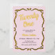 Invitación Con Relieve Metalizado Twenty One Gold Script Rubor Pink 21 cumpleaños