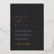 Una hermosa invitación minimalista de bodas basada en la tipografía con sus nombres en llamativas letras de Relieve metalizado dorado, junto con letras de acento de escritura moderna de caligrafía. Personalice con los detalles de su boda debajo, alineados a la izquierda, y añada una foto vertical de sangrado total o orientada a retratos a la parte posterior. Nuestra colorida ceniza hace una declaración clásica con letras de Relieve metalizado en blanco y dorado sobre un fondo suave de color negro.