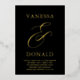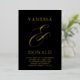 Invitación nupcial moderna con un diseño sencillo y mínimo con sus nombres y un elegante grabador y en un formato grande sobre los detalles del evento. Todo el texto del frente está en Relieve metalizado real sobre un fondo negro y puede cambiarse en la herramienta de edición de diseño.