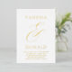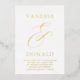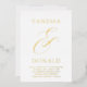 Invitación nupcial moderna con un diseño sencillo y mínimo con sus nombres y un elegante grabador y en un formato grande sobre los detalles del evento. Todo el texto del frente está en Relieve metalizado real y puede cambiarse a Relieve metalizado parcial en la herramienta de edición de diseño.