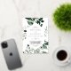 Esta invitación de boda en un solo elemento con verde esmeralda y hoja de oro rosa es perfecta para una boda boho. El diseño elegante pero rústico presenta hojas de acuarela verde oscuro y eucalipto con un toque moderno y bohemio del bosque. Cuenta con texto de hoja de oro rosa de lujo en la parte delantera. Ahorre papel incluyendo los detalles en la parte posterior de la invitación de boda en lugar de en una tarjeta de inclusión separada. Incluya la información de RSVP también si su invitado responderá electrónicamente (opcional).
