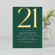 Invitación Con Relieve Metalizado Verde Esmeralda y oro | Cumpleaños moderno 21