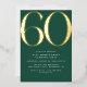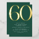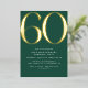 Invitaciones modernas de cumpleaños número 60 con un gran título "60" en Relieve metalizado metálico real. Los detalles del evento se escriben a continuación en una letra blanca mate. Diseño neutro de género con un verdadero acento de Relieve metalizado sobre un fondo verde oscuro.