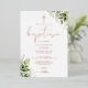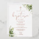Invitación Con Relieve Metalizado Verdor Floral Monograma Bautismo Rosa Oro
