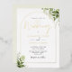 Invitación Con Relieve Metalizado Verdor Monograma Elegante guión Boda Arco de Oro